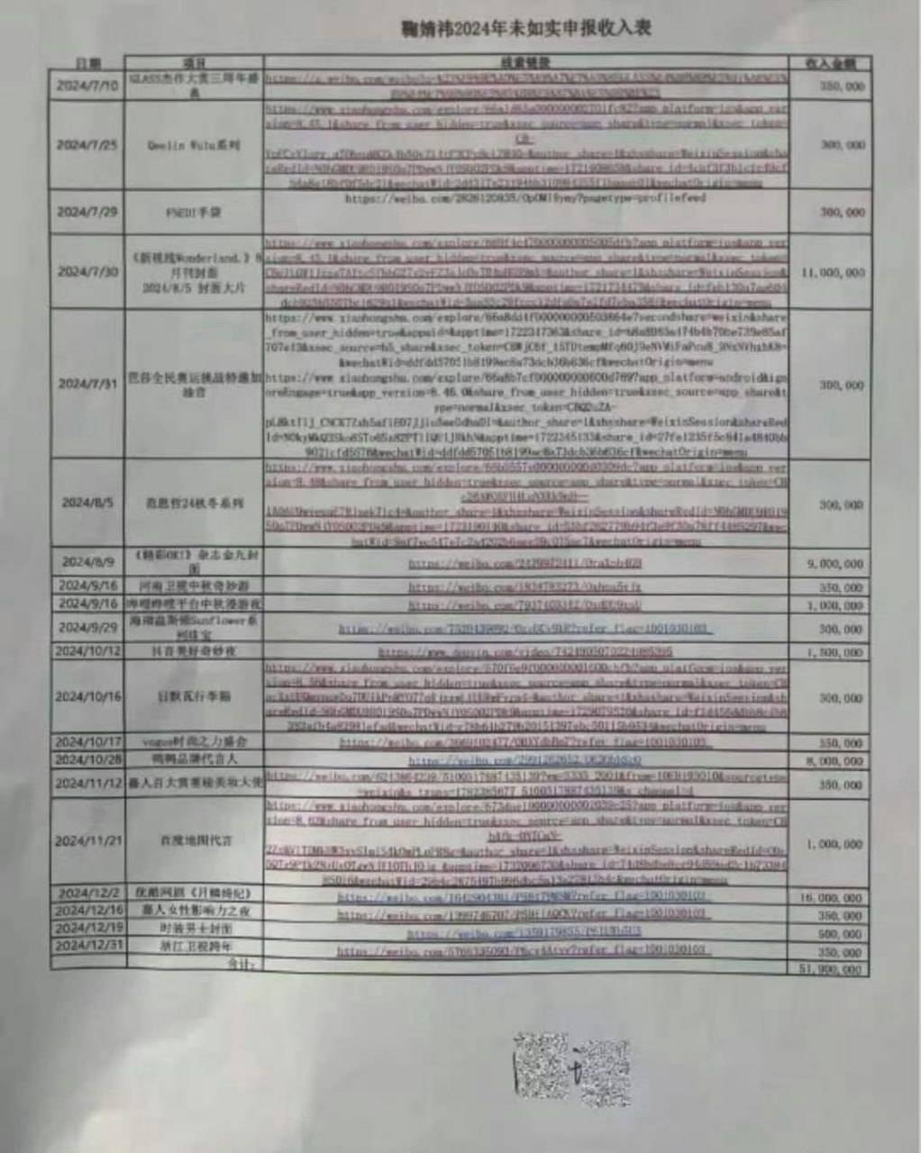 3月30号,内娱炸了个能霸榜热搜的惊天大瓜。有“内部爆料”称,丝芭传媒实名举报鞠婧祎偷税漏税:2024年整年仅申报1100万收入,个中近500万依然老东主给的,可光2024年下半年,她拍剧、代言、跑营谋的本质收入就守旧有5000万,瞒报比例近88%。